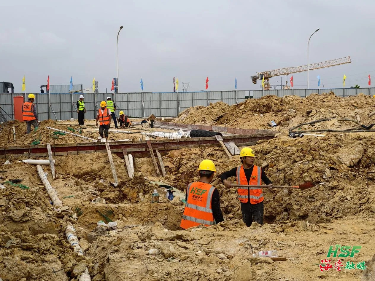 项目加速,海口国家高新技术产业开发区狮子岭工业园内,昌农胡椒产业融合发展示范项目施工现场,机械轰鸣一派热火朝天的建设景象;