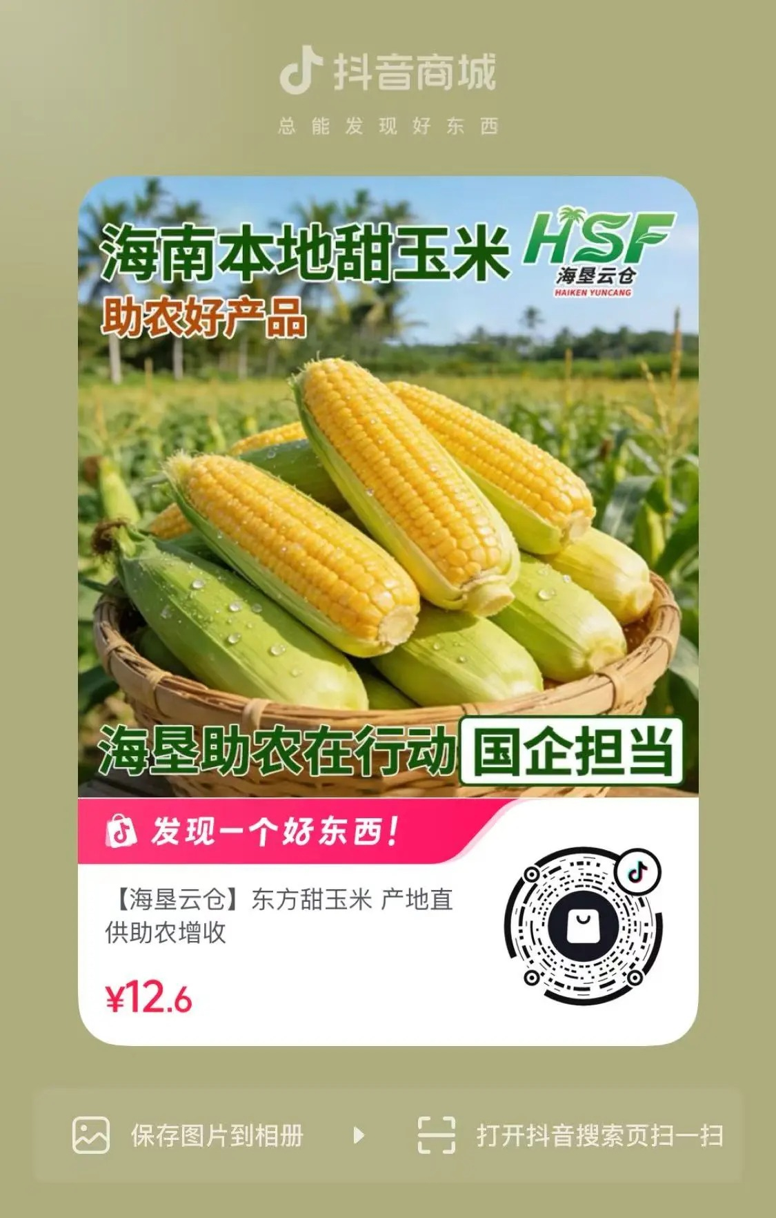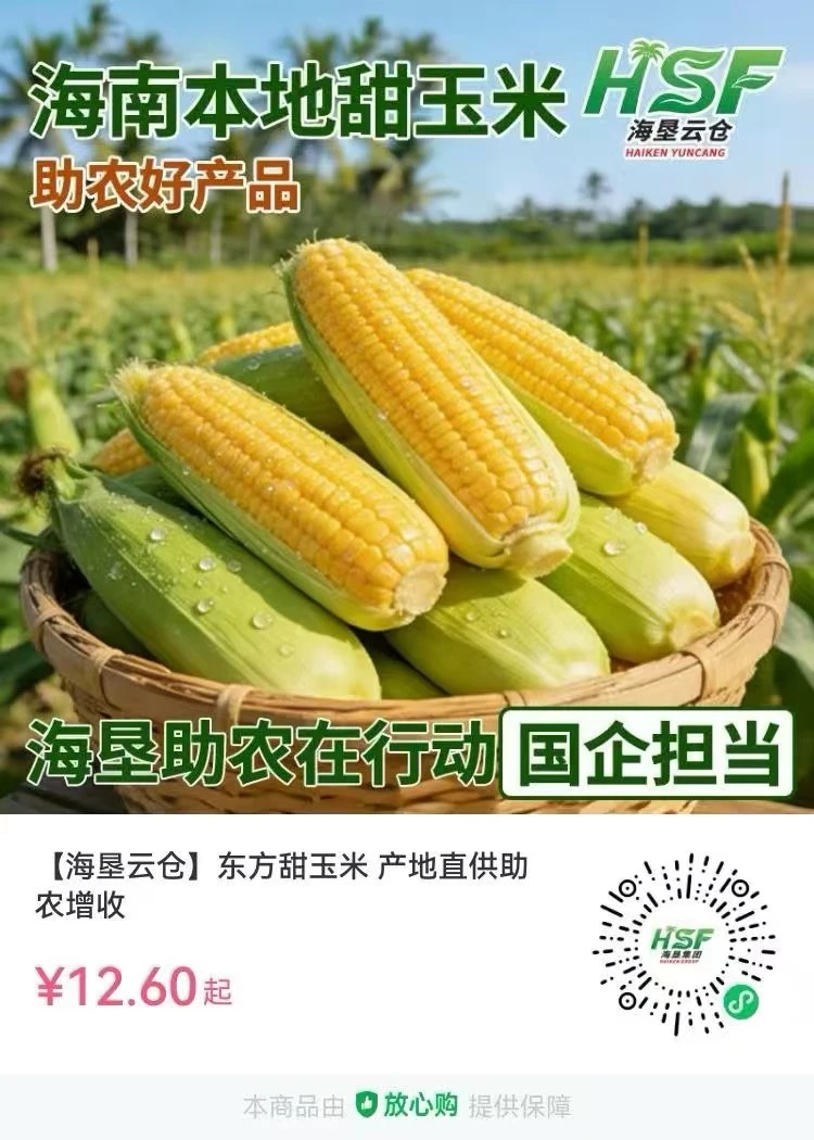 据了解,玉米专场直播将连续开播3天,直播推出5斤装12.6元、8斤装16.9元等多款优惠组合,欢迎广大市民朋友进入“海垦云仓”抖音直播间、“海垦集团线上商城”选购,以实际行动支持农产品销售。