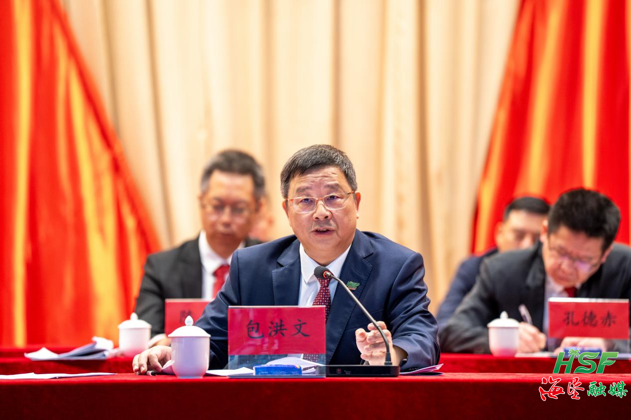包洪文对海南橡胶“十四五”时期及2025年工作所取得的成绩给予充分肯定,并以十大成绩总结近年奋斗历程,为海南橡胶夺取一季度“开门红”、奋进新征程加压鼓劲、传递信心,彰显了海垦集团党委对海南橡胶的高度重视与殷切期盼。他指出,在海垦集团党委的领导下,海南橡胶上下同心、攻坚克难,天然橡胶战略安全保障能力明显增强,海外版图持续拓展,成为全球最大的集天然橡胶科研、种植、加工、贸易一体化的跨国企业集团,为海垦集团连续三年进入中国企业500强作出了重要贡献。特别是2025年,海南橡胶党委班子主动作为、敢于担当,成功破解了华阳案等一系列历史遗留问题,班子建设持续加强,经营管理机制不断完善,种植板块扭转了多年经营性亏损局面。同时,与垦区兄弟企业的协作更加深入,境内外联动机制趋于完善,垦地融合、关爱基层的价值导向不断巩固,党建引领能力持续加强,反腐败工作不断深入,为企业可持续发展营造了良好生态,相信今年海南橡胶将触底反弹、否极泰来。要树立信心,以独步天下的豪气、天生我材必有用的底气、舍我其谁和一马当先的志气,努力在服务国家战略和海南自贸港建设中走在前列。